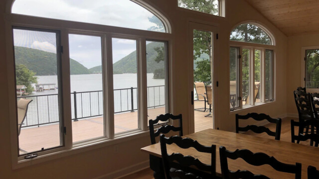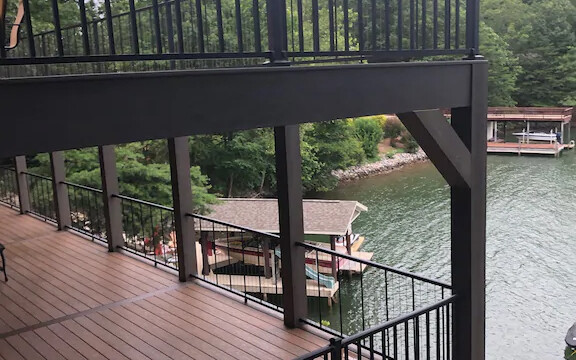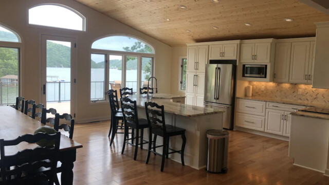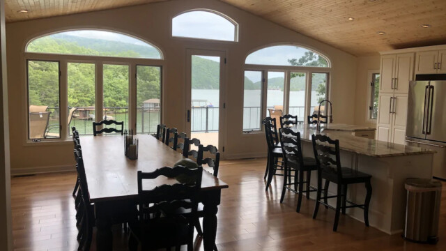 Upon purchasing this amazing home, we immediately untook extensive renovations to take it to the next level. Currently we are renovating the entire inside of the home with new floors, fresh paint, new windows to soak in the pricelss view of Smith Mountain, a state of the art designer kitchen suitable for a chef, and 2500 square feet of deck space, half of which is under roof. The extensive decks provide outdoor living space to maximize your ability to enjoy the signature view of Smith Mountain Lake’s famed “gap,” and relax with a cool breeze blowing off the lake only 25 feet away! There are a very limited number of homes on the entire lake that can lay claim to this magnificent view and we look forward to sharing it with our guests. The grandeur of the porches cannot be overstated and you will find yourself wanting to savor every moment on them.