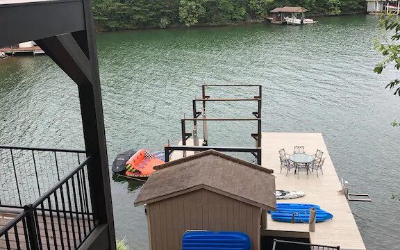 The dock has also undergone renovation. We converted the standard roof to an elevated deck to allow more deck space for our guests, a jumping platform for the daredevils in your group (do so at your own risk, of course!), and another way to capitalize on, you guessed it, THE VIEW!