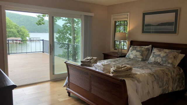 This home boasts 5 bedrooms (beds for 12), including 2 true master suites, and 4 full bathrooms. A spacious open floor plan living room was created by removing walls that flows nicely into a dream kitchen with new floors, cabinets, countertops, and appliances. A formal dining room is available, as well as bar seating but we strongly suggest you follow our lead and eat on the deck whenever the weather allows! A virtual wall of glass allows full enjoyment of your view from the kitchen, living room, sunroom, and bar area. Four of the 5 bedrooms allow you to see the lake and mountains from the comfort of our new beds and with access to the decks either directly from the rooms or nearby. Downstairs also provides a billiards table for sport, as well as a card table for rainy day and late night entertainment.